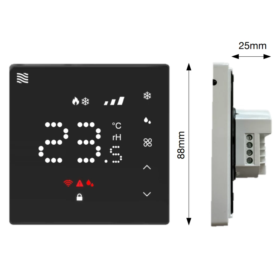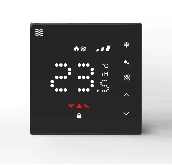 Elsődleges célja, hogy olyan precíz méréseket és vezérléseket kínáljon, amelyek optimális hőkomfortot és energiahatékonyságot biztosítanak a lakóterekben. Az eszköz zökkenőmentesen integrálható a meglévő vagy új kiépítésű hűtő-fűtő rendszerekbe, hogy felügyelje és szabályozza a hőmérsékletet a lakás különböző zónáiban, ezáltal elősegítve a gyors és személyre szabott klímaszabályozást. A fejlett és gyárilag kalibrált érzékelőkkel felszerelt termosztát folyamatosan adatokat gyűjt a szobahőmérsékletről, a páratartalomról és a tartózkodási szokásokról. Ezeket az adatokat azután elemzi, hogy valós idejű beállításokat hajtson végre a fűtési és hűtési rendszerelemeken, biztosítva, hogy a lakás minden részén fenntartsa a lakók által beállított kívánt hőmérsékletet.